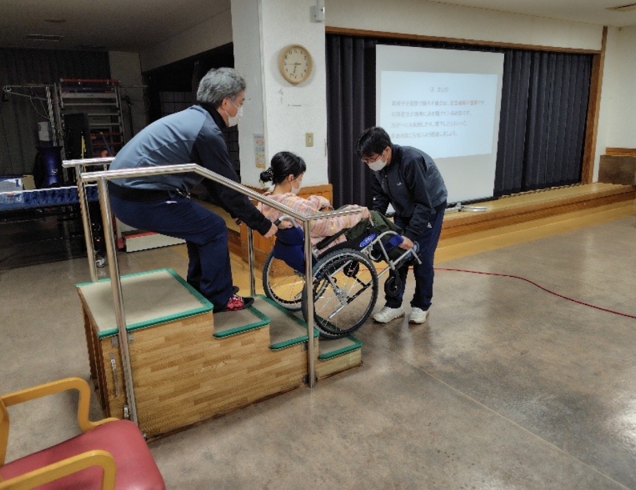 2月24日、職員会議にて火災等の避難について動画視聴し、避難時の担架の作り方や車いす避難について勉強しました。
